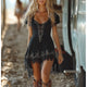 Damen-Minikleid Boho-Kleid Westernkleid Mode Klassisch Outdoor Urlaub Ferien Reguläre Passform Blumenmuster Kurzarm V-Ausschnitt Schwarz Dunkelblau Sommer